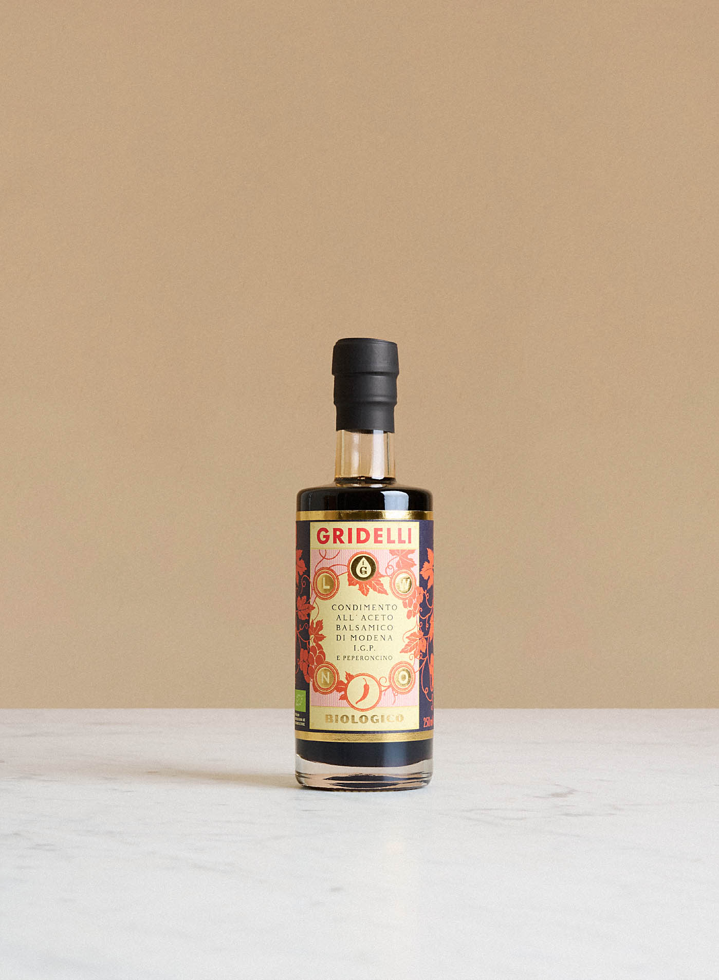 Ekologisk balsamico med peperoncino från Gridelli. En IGP-märkt balsamico där den naturliga sötman möter en behaglig hetta från peperoncino. Kombinationen skapar en spännande smakförhöjare som passar lika bra till sommarens grillade rätter och fräscha tomatsallader som till eleganta desserter. - Egenskaper