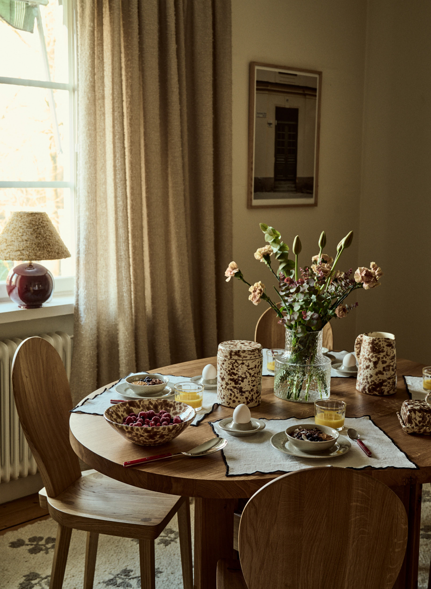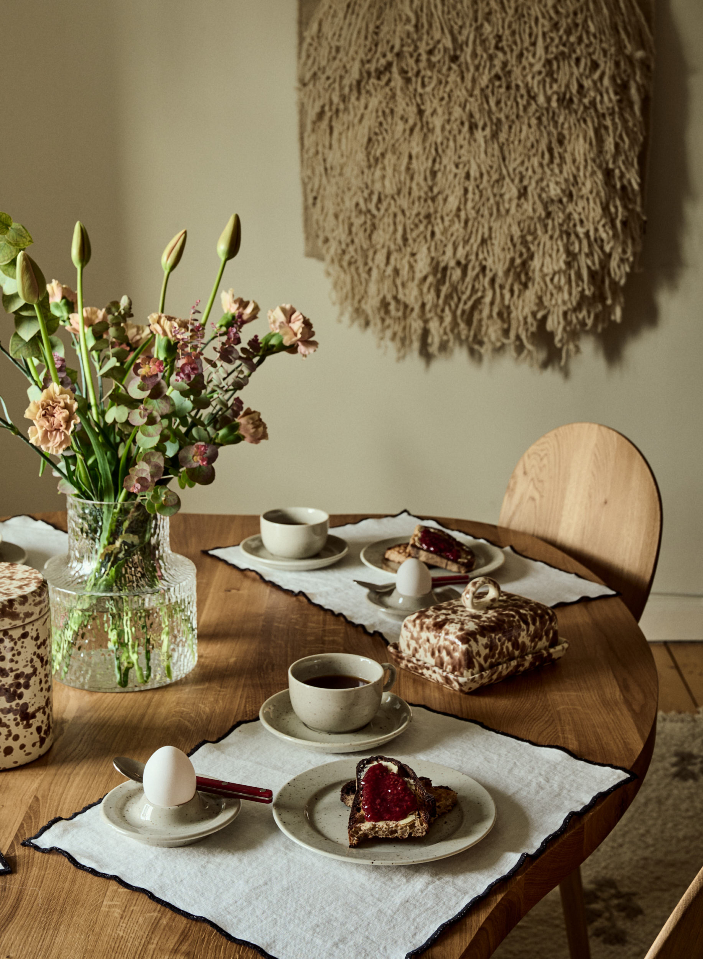 Serien har en neutral färgpalett som passar in i de flesta hem och miljöer. Porslinets stilrena design gör att det är vackert som en komplett servis men även enkelt att kombinera med andra serier för att skapa en mer dynamisk och färgglad dukning.