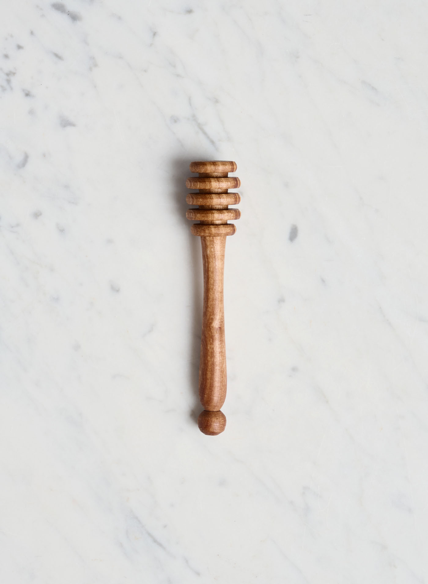 Honungssnurra i olivträ tillverkad i massivt olivträ med vacker, levande ådring som gör varje exemplar unikt. Perfekt till söndagens frukostpannkakor. Den mjuka formen och de svarvade spåren gör det enkelt att samla upp och ringla honung.