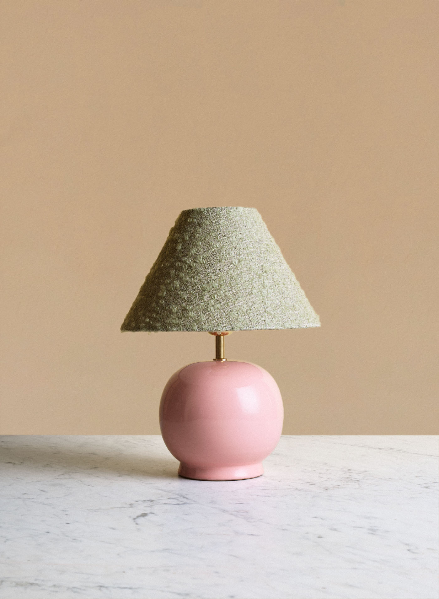 • Lampskärm Cono Piccolo i tyget Torno från svenska Astrid Textiles. Skärmen tillverkas för hand i en ateljé utanför Eskilstuna, där tillverkningen av lampskärmar sträcker sig tillbaka till 1940-talet, och där hantverket har gått i arv från generation till generation.