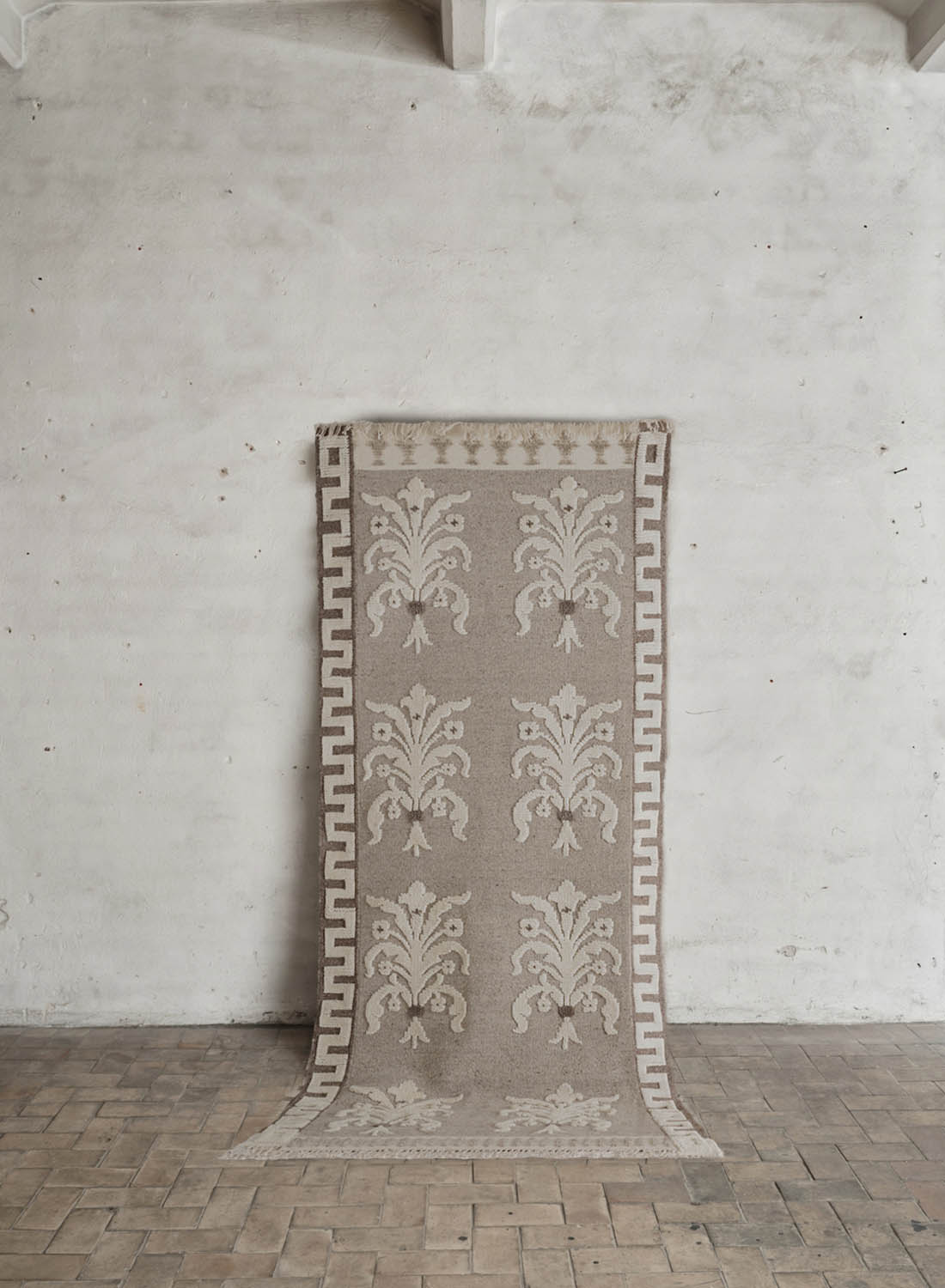 De diskreta mönstren är inspirerade av väggmålningar och dekorativa motiv från historiska byggnader i Frederiksberg, Köpenhamn – en hyllning till klassisk arkitektur och hantverkstradition.