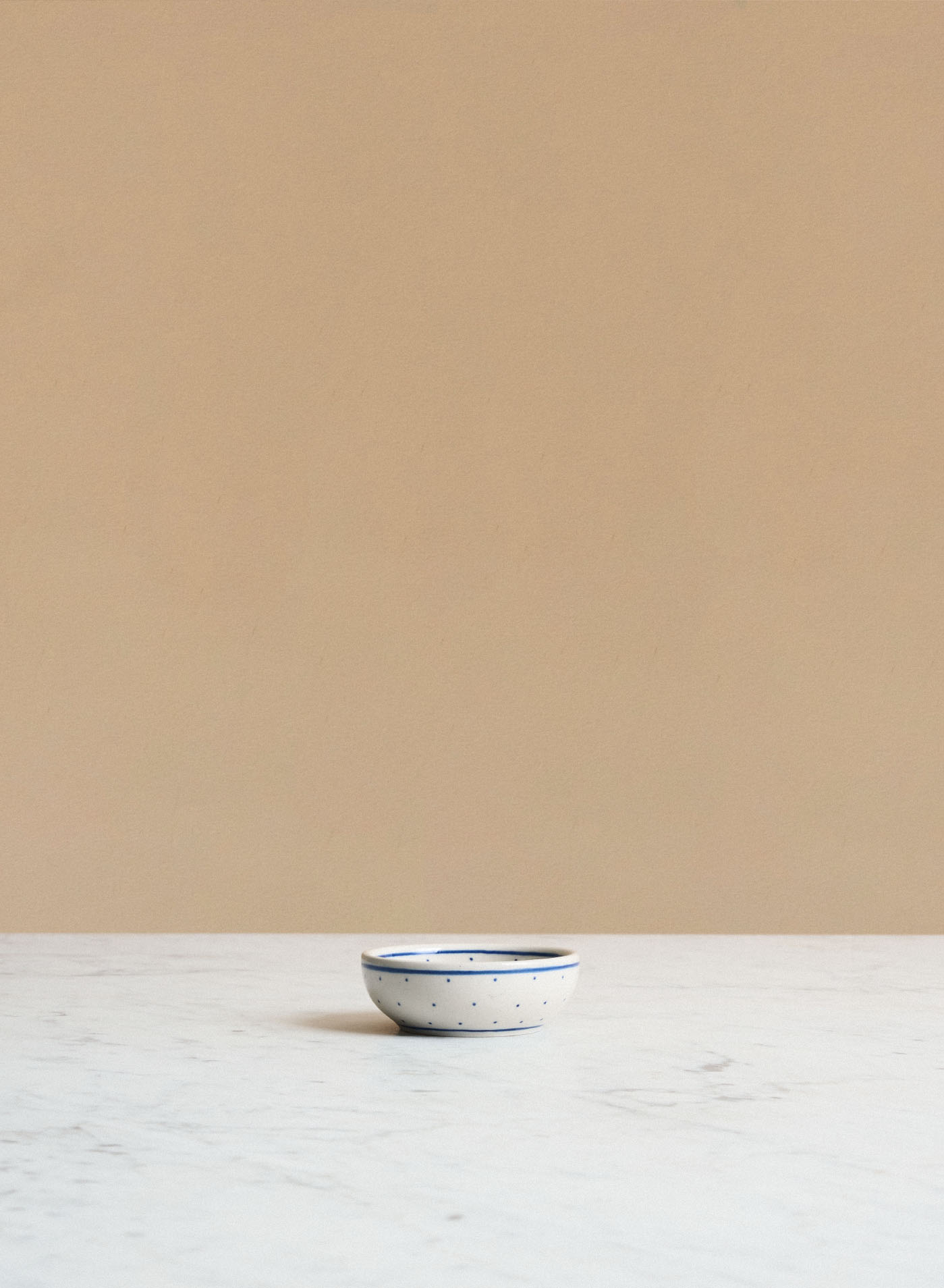 Charmig miniskål i stengods från polska Ceramika Artystyczna med handmålat prickmönster som ger ett lekfullt och tidlöst uttryck.