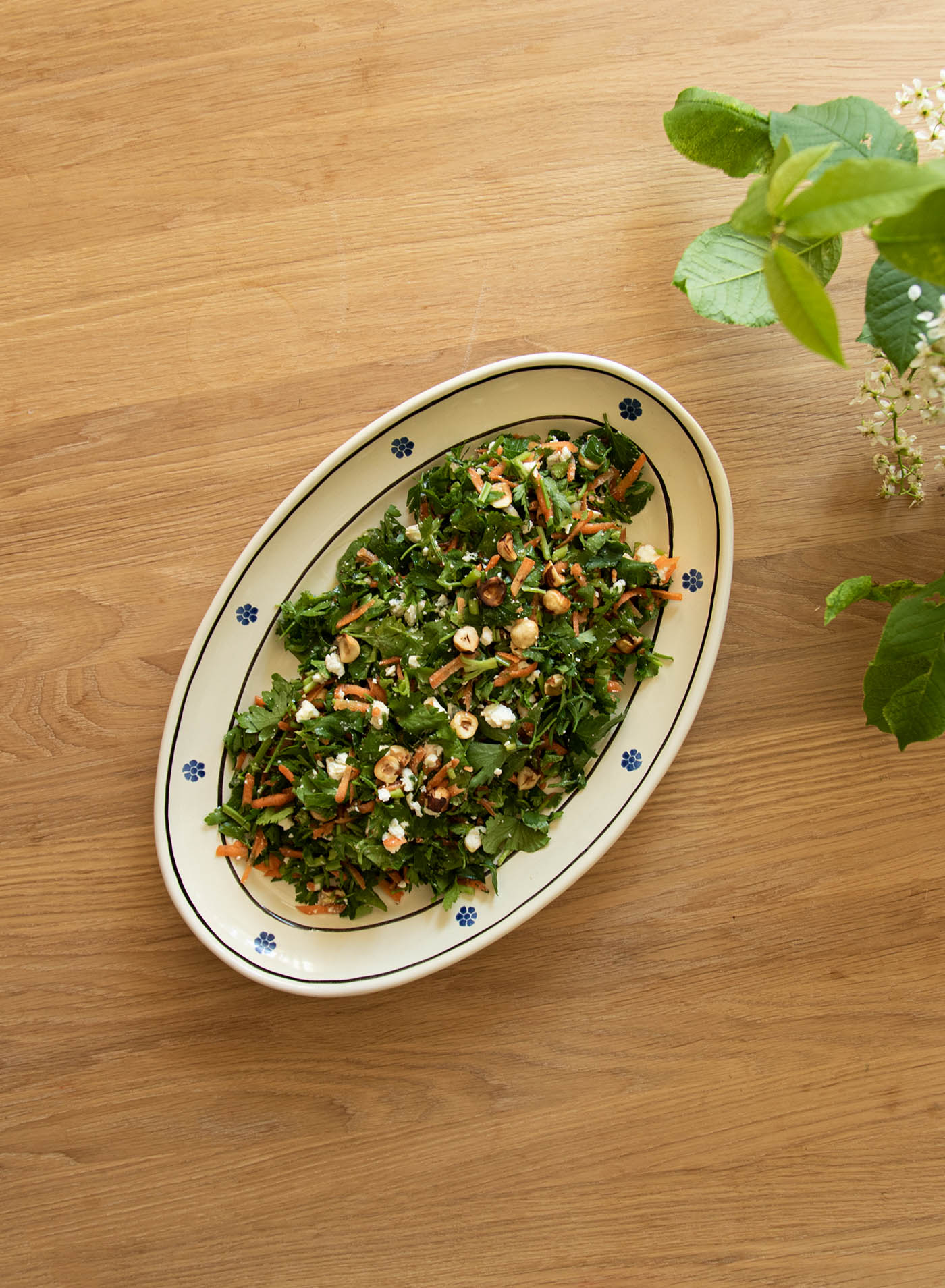 Varje fat är handgjort med en robust känsla och har en glasering som tål vardagens påfrestningar. Den handmålade designen ger varje exemplar ett unikt utseende med subtila variationer i färg och textur, där små skönhetsfläckar är en naturlig del av det traditionella hantverket.