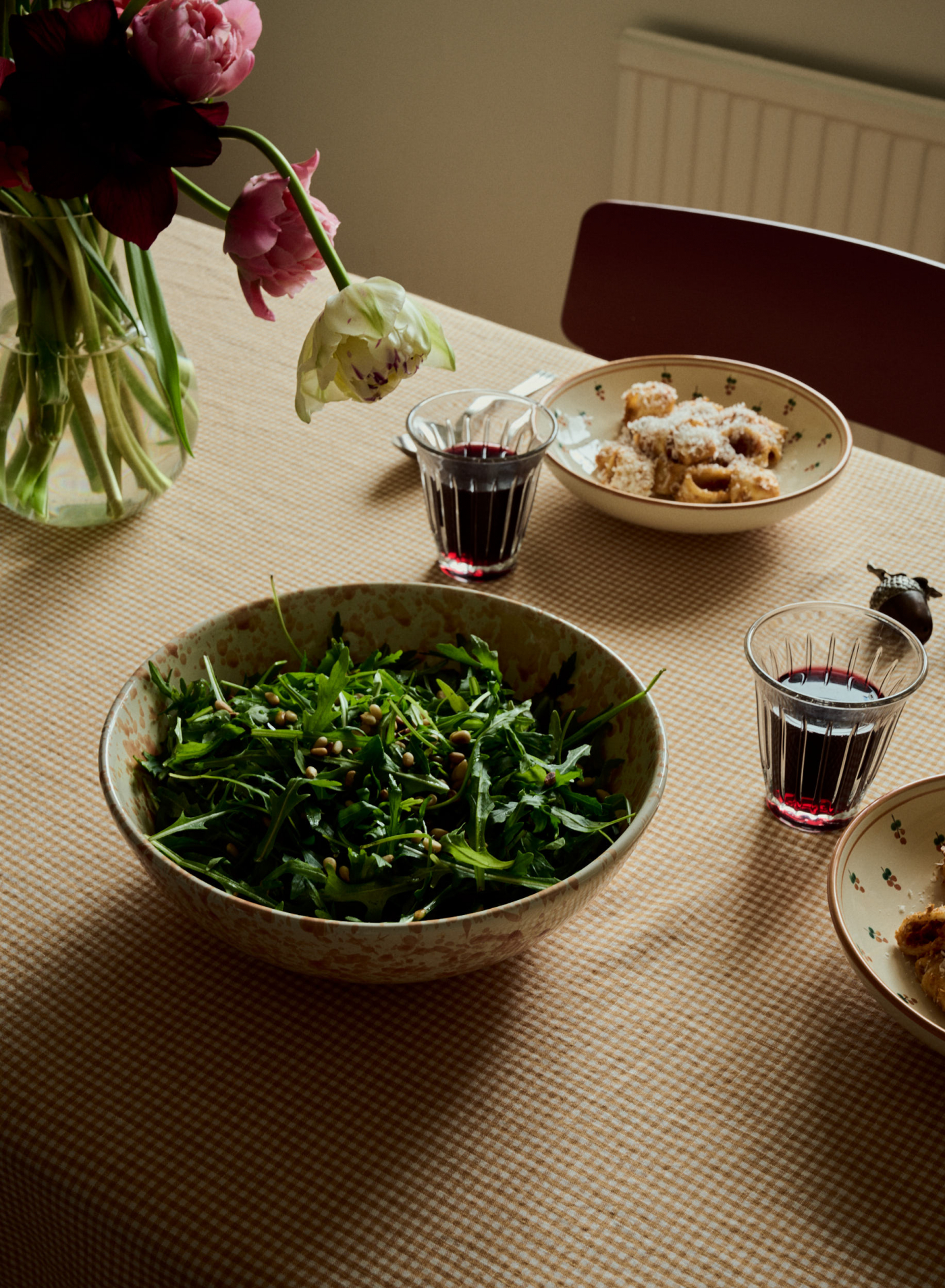Spruzzi-serien finns i ett flertal färger och är vacker som en hel serie, men också som ett tillägg till andra serier för att skapa en livfull dukning.