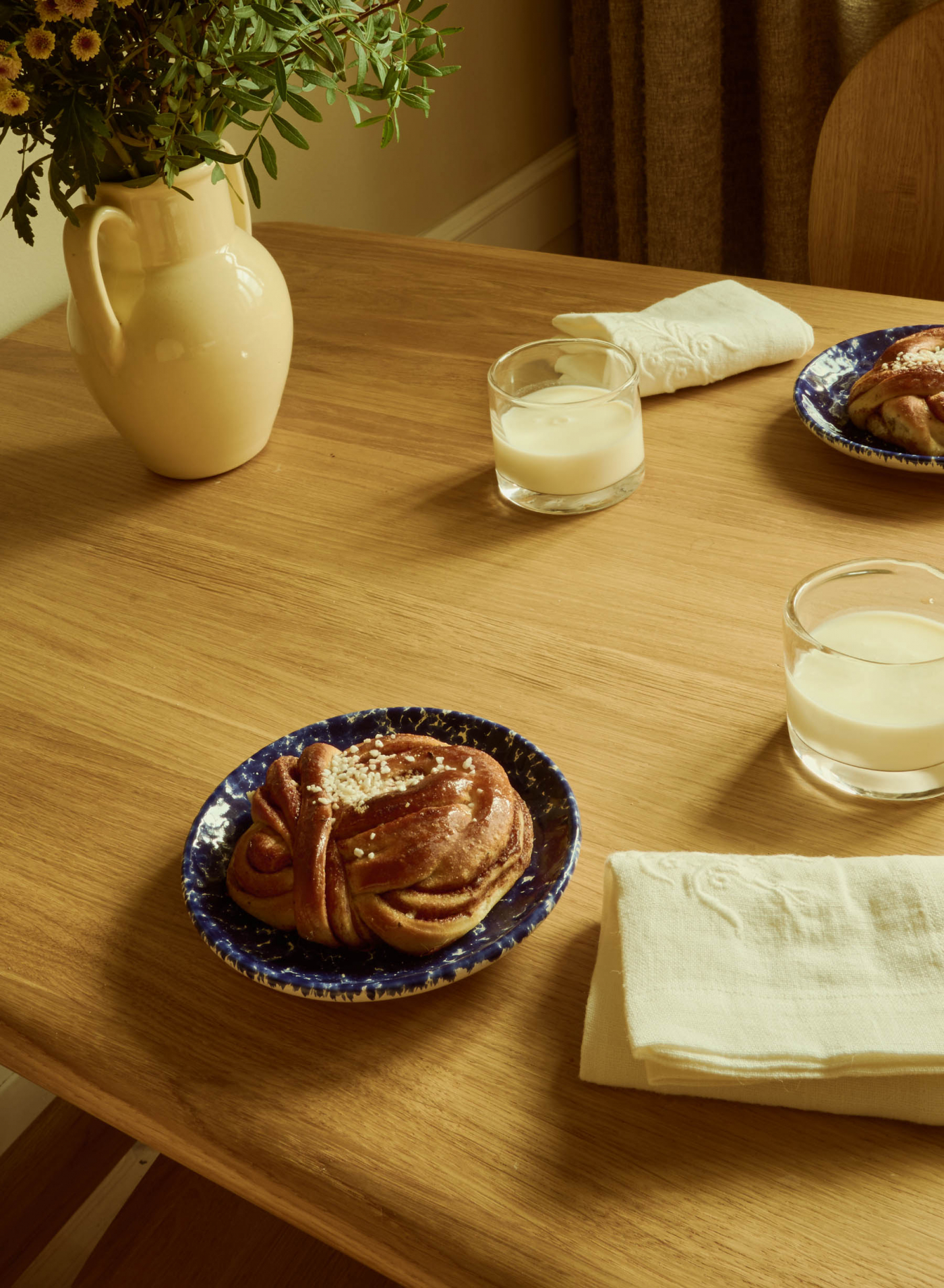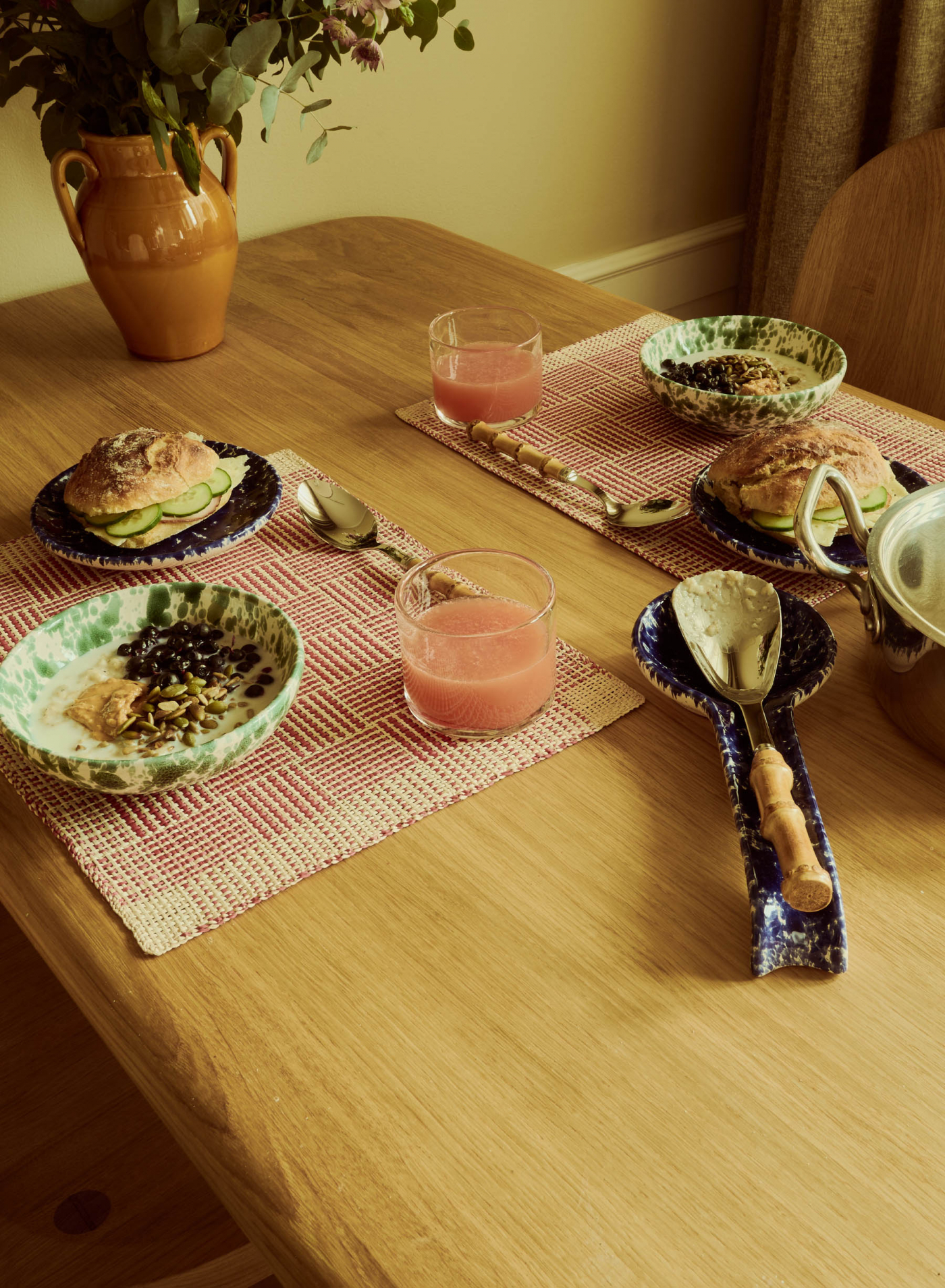 Blått är en oerhört tacksam färg som enkelt kan kombineras med både livliga och nedtonade kulörer. Vi älskar att kombinera Il Mare med serierna Papa Giro och Scatole, där den blåa färgen skapar en röd tråd i dukningen samtidigt som de olika mönstren tillför lekfullhet.