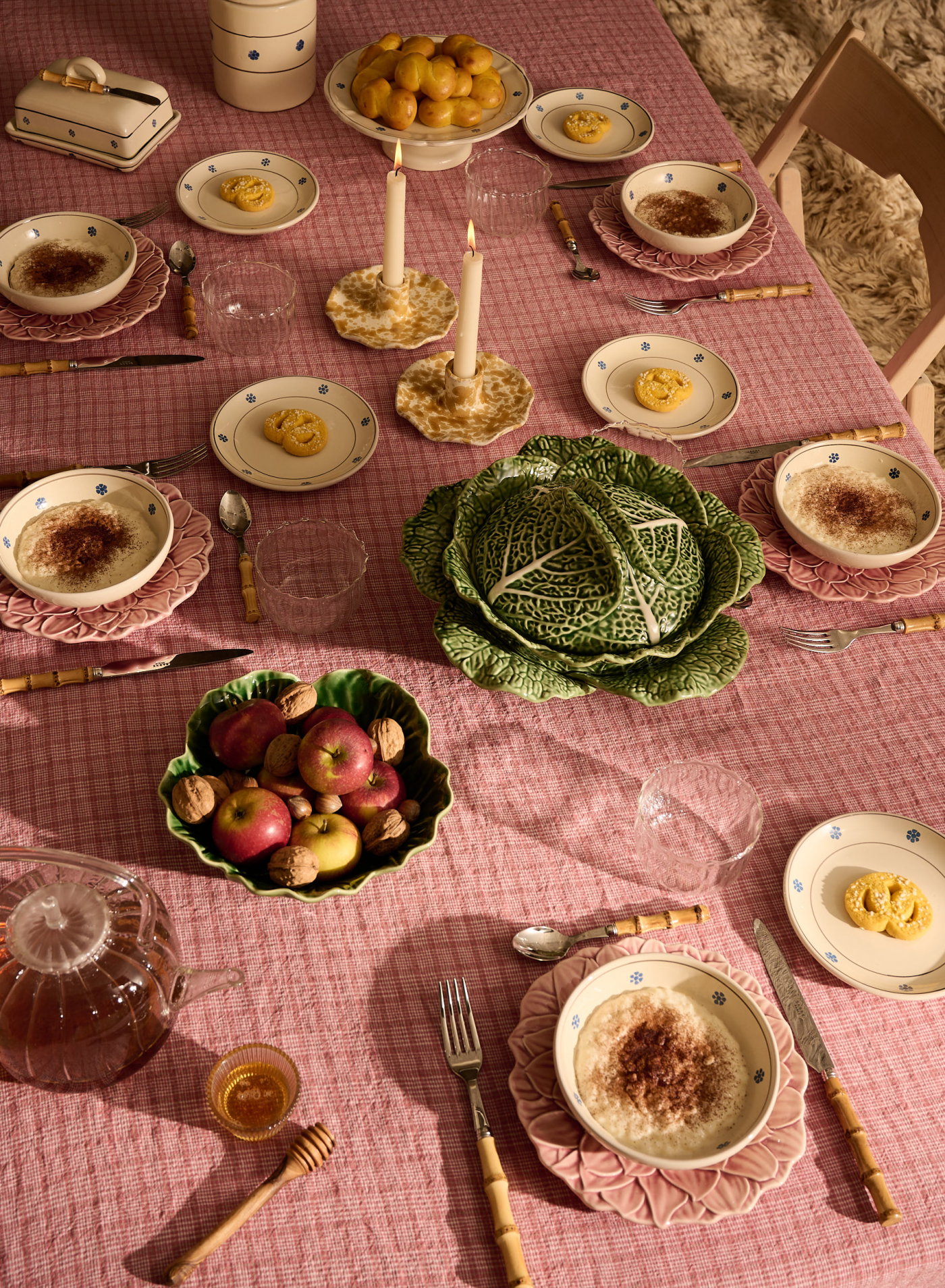 Varje fat är handgjort med en robust känsla och har en glasering som tål vardagens påfrestningar. Den handgjorda och handmålade designen ger varje exemplar ett unikt utseende, med subtila variationer i färg och textur, där små skönhetsfläckar är en naturlig del av det traditionella hantverket.