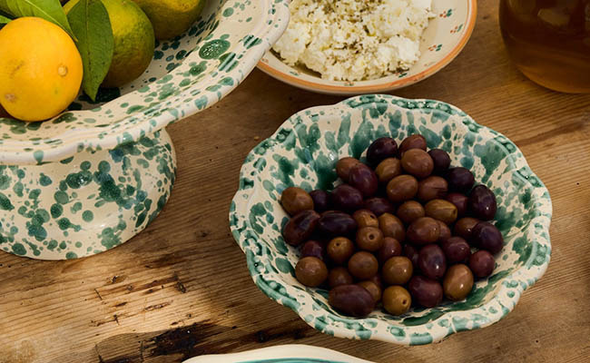 "Spruzzi" är ett italienskt ord som betyder "stänk" på svenska. Stänkmålat porslin är en hantverkstradition som är typisk för regionen Puglia i Italien. Denna teknik innebär att färgen slumpmässigt stänks på keramiken för att ge den en unik och individuell karaktär. Den traditionella tekniken har blivit en viktig del av regionens kulturella arv och representerar en lång historia av keramiktillverkning i området.