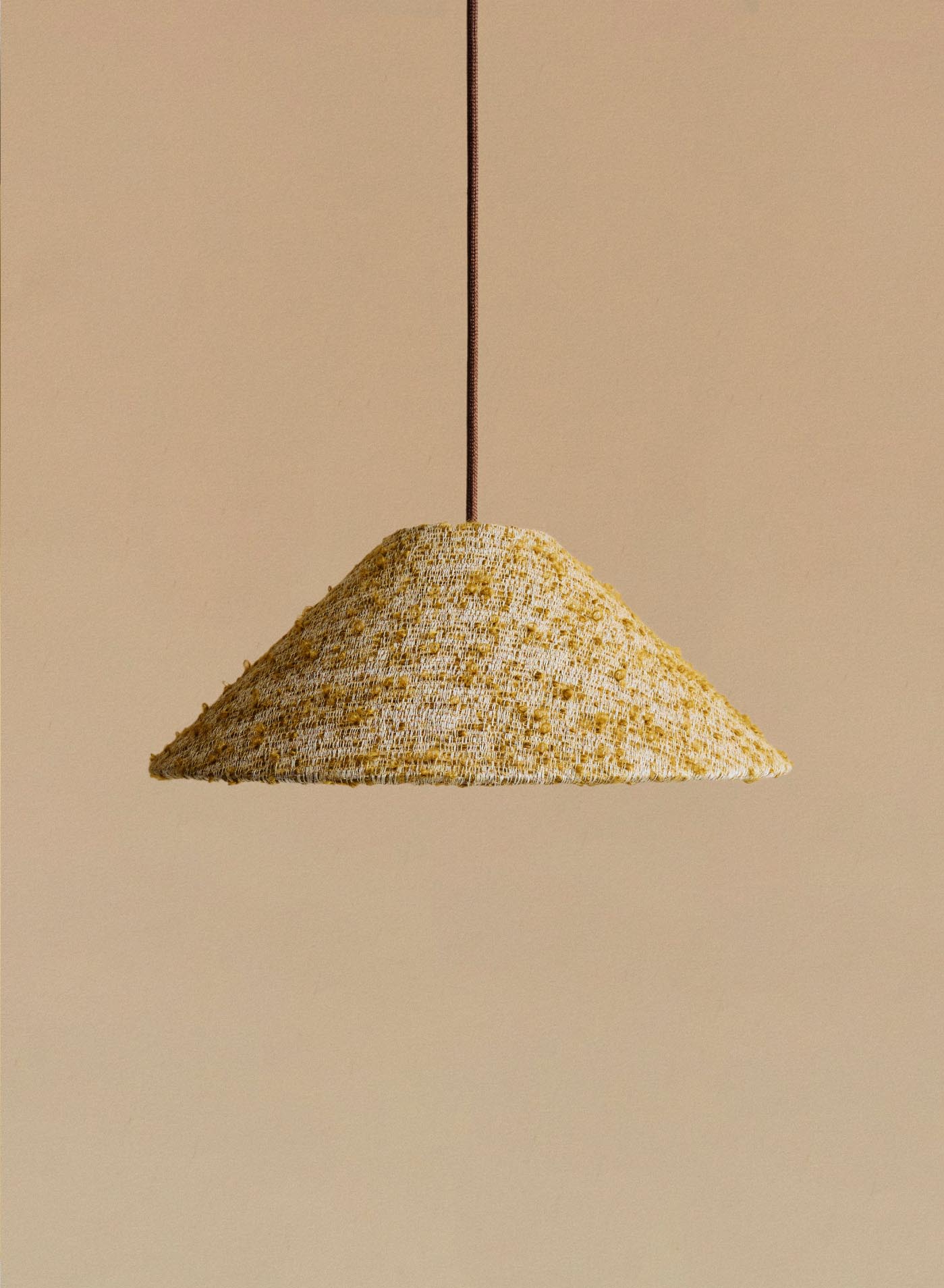 Takpendeln Ampio är klädd i det vackra tyget Torno från svenska Astrid Textiles och kombineras med en flätad textilsladd, vilket tillsammans skapar en funktionell, taktil och elegant taklampa.