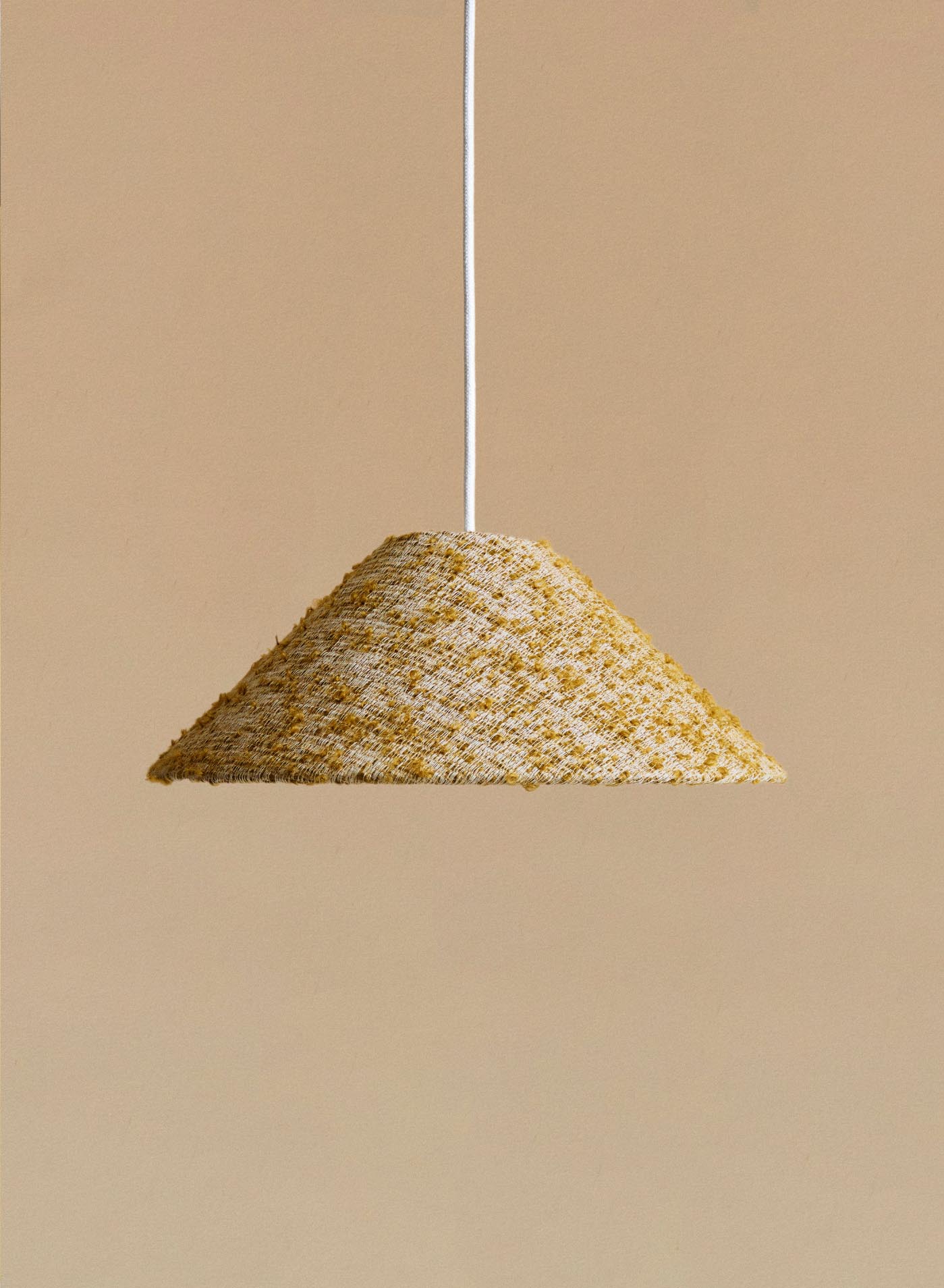 Takpendeln Ampio är klädd i det vackra tyget Torno från svenska Astrid Textiles och kombineras med en flätad textilsladd, vilket tillsammans skapar en funktionell, taktil och elegant taklampa.