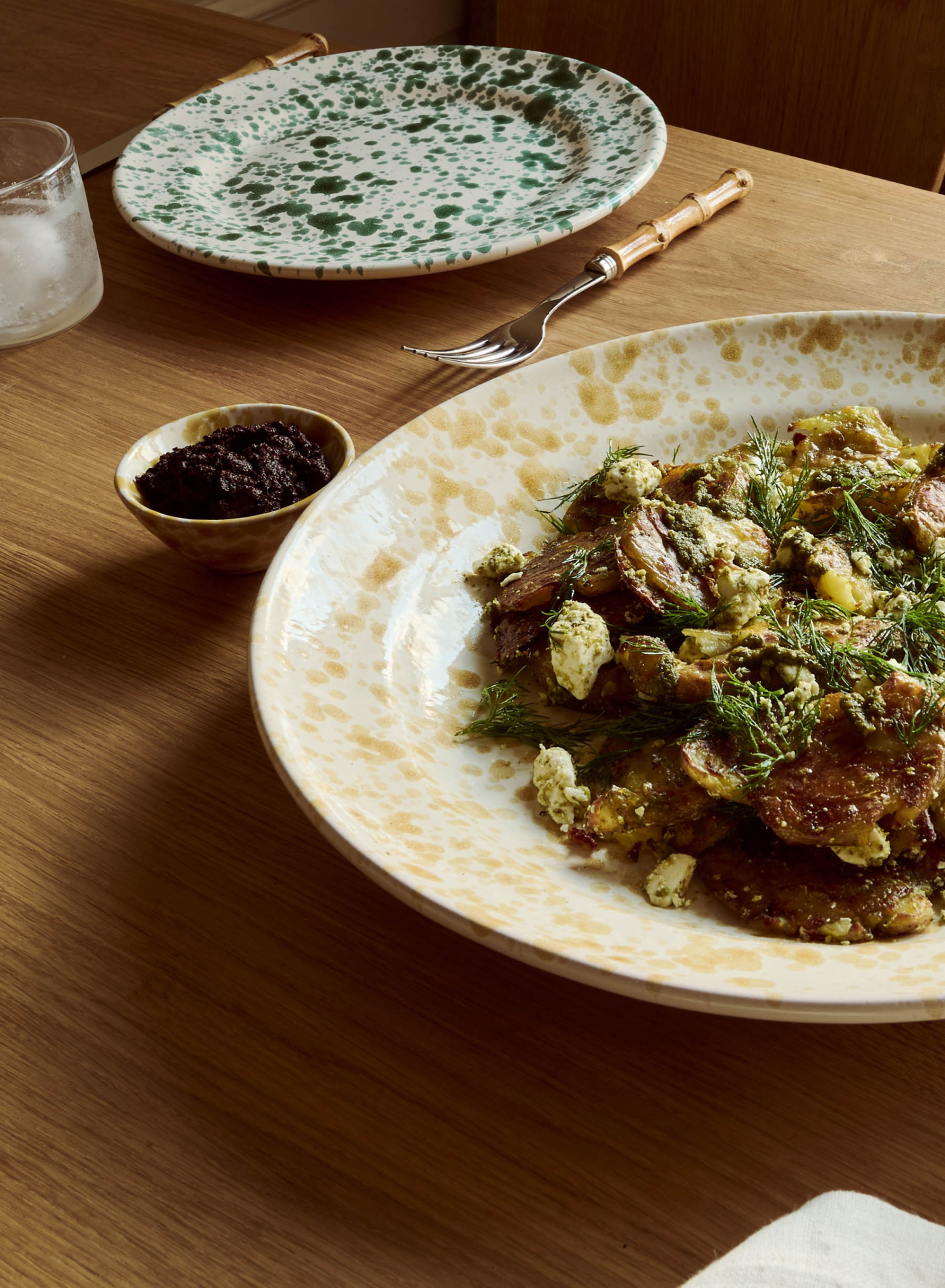 Det stänkmålade porslinet från Nicola Fasano är unikt, där stänken lägger till en personlig touch och skapar variationer i designen. Spruzzi-serien finns i ett flertal färger och är vacker som en hel serie, men också som ett tillägg till andra serier för att skapa en livfull dukning.